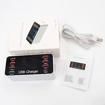 Multiple USB Charger, 40W 8-Port Desktop Charging Station Smart USB Port Hub Charger with Quick Charge 3.0 USB Port, Type C Port and LCD Display for Smart Phones, Tablet and More